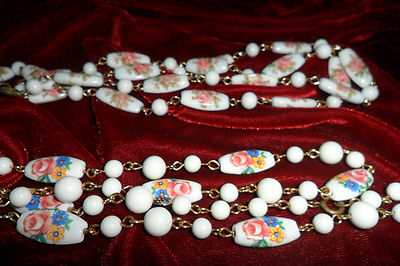 Vintage hand painted milk glass beads 2 necklaces. SPRING Colors flowers.