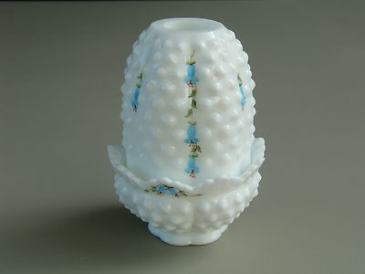 Vintage Fenton Fairy Lamp White MilkGlass Milk Glass Hobnail "Blue Bells" Estate