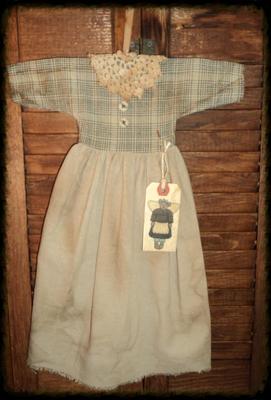 GRUNGY PRIMITIVE WALL~CUPBOARD DOLL DRESS AMERICANA ANGEL BEAR~FOLK ART~DECOR