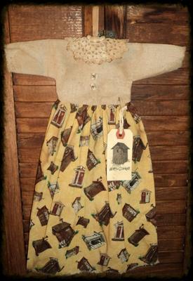 GRUNGY PRIMITIVE WALL~CUPBOARD DOLL DRESS OUTHOUSE~FOLK ART~DECOR