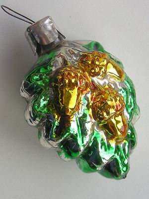 Title (ebay affiliate link): Vintage Russian Christmas Silver glass ornament "Acorns"