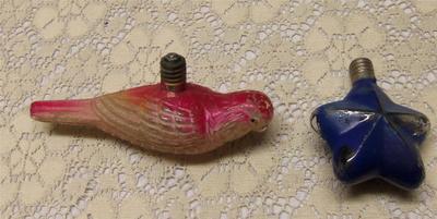 Title (ebay affiliate link): 2 VTG C6 CHRISTMAS TREE LIGHT BULBS BIRD AND BLUE STAR C 6 FIGURAL GLASS WORK!