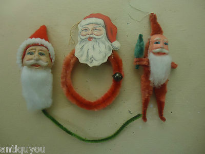 Lot of 3 Antique Santa Claus Christmas Tree Ornaments