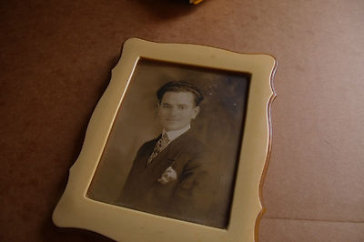 Title (ebay affiliate link): Vintage Art Deco 1920s Ivory celluloid picture frame Sculpted edge Velvet back