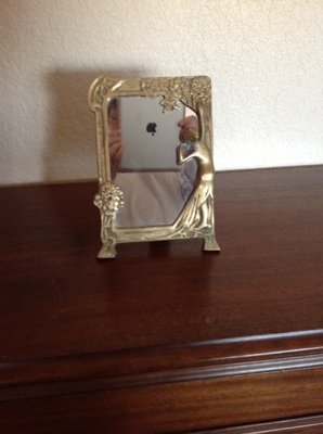 Title (ebay affiliate link): Solid Brass Vanity Mirror w/Woman Gazing Back. Art Deco/Art Nouveau