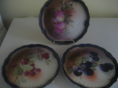 Title (ebay affiliate link): Set of 3 J&C Malmaison Bavaria Hand Painted 8 1/2" Fruit Plates Cobalt Trim