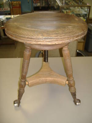 Title (ebay affiliate link): Antique Oak Piano Stool w/ Cast Iron Claw & Glass Feet