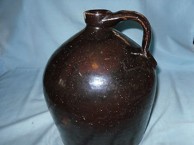 OLD BROWN GLAZED STONEWARE HANDLED JUG / CROCK