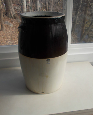 Title (ebay affiliate link): Vintage Large 6 Gallon Stoneware Crock- Brown and White Glazed- Blue 6 marked