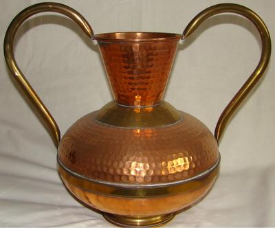 Vintage French copper/brass FLOWER VASE hammered/dovetailed