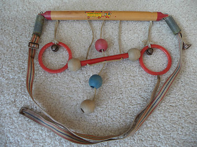 Vintage Cradle Gym Adjustable Bakelite & Wood Metal Bells Baby Crib Toy Mobile