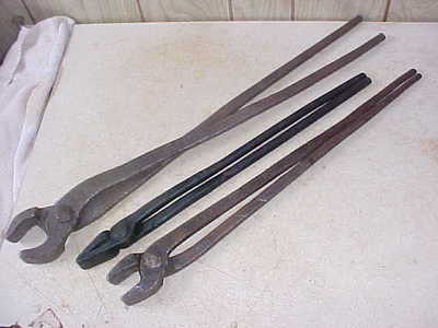 Title (ebay affiliate link): 3 Large Antique Farm Tool Forged Blacksmith Tongs