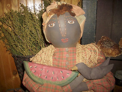 Title (ebay affiliate link): Primitive handmade Folk art Black Doll. Antique quilt, Primitive Crow OOAK