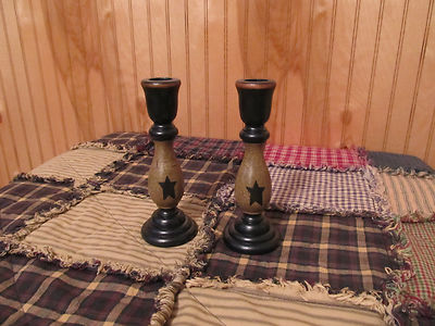Title (ebay affiliate link): PRIMITIVE WOOD CANDLE HOLDERS STICKS BLACK TAN CRACKLE COUNTRY STAR DECOR