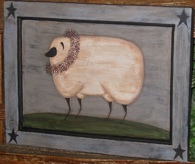 Title (ebay affiliate link): *~*PRIMITIVE*~* HP FOLK ART SHEEP *~* GRAPEVINE *~* BARN STAR *~* DOOR PANEL