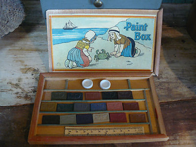 Title (ebay affiliate link): Vintage German Childs Wooden Paint Box with Original Unused Paint Blocks