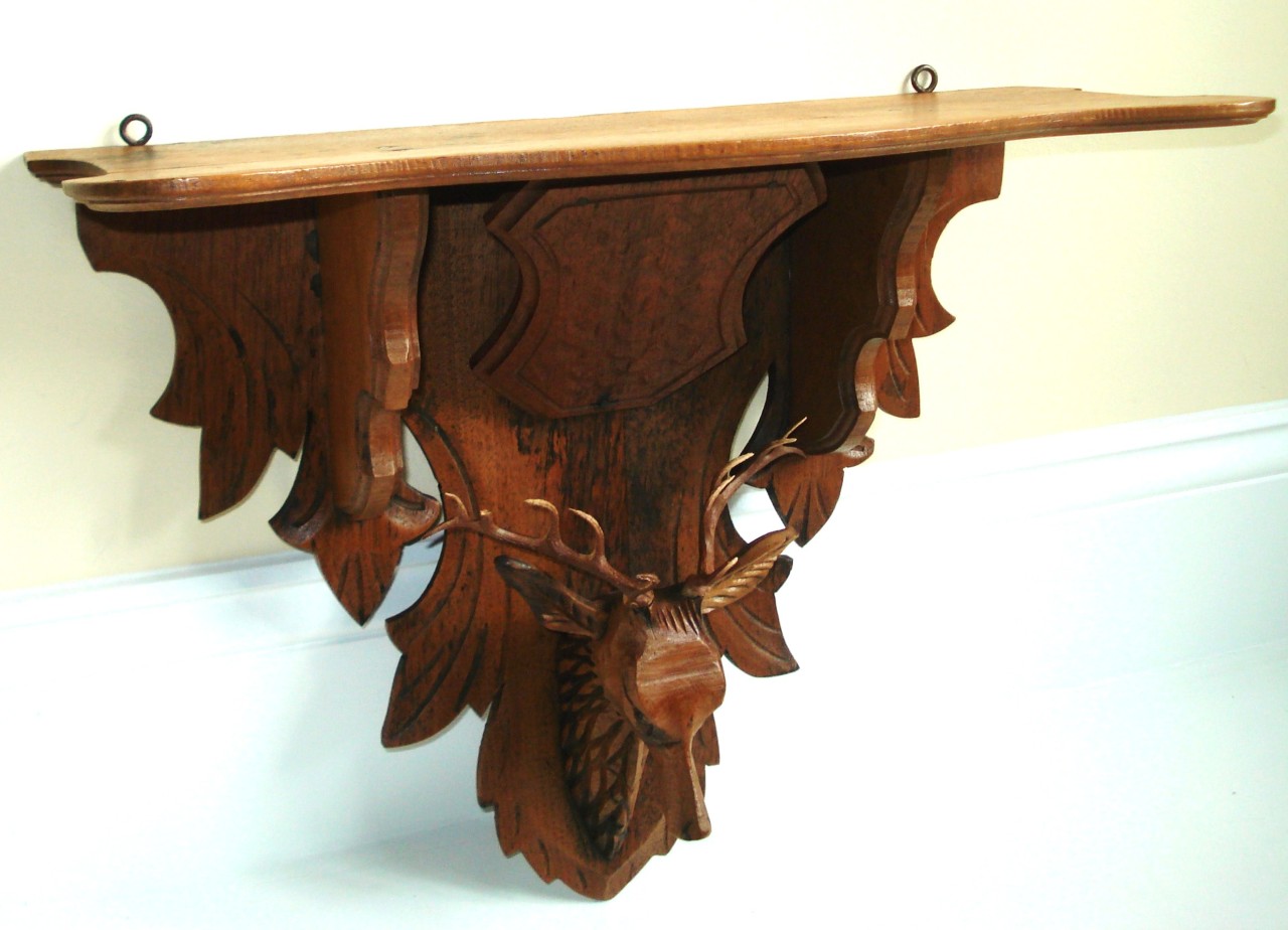Antique Carved Walnut CLOCK SHELF Deer Head Stag Buck