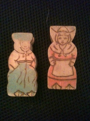 Antique Wooden Doll Clothes Pins ? in the Shape of a Holland Couple