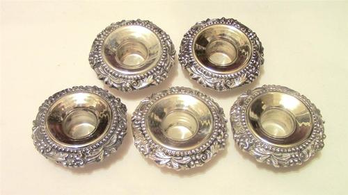 (5 pcs) SET VINTAGE ANTIQUE SILVERPLATE CANDELABRA CANDLESTICK WAX DRIP CATCHERS