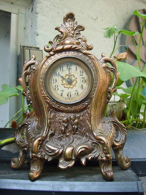 ANTIQUE GERMAN ART DECO 1920'S ORNATE METAL CLOCK