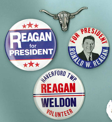 Title (ebay affiliate link): Coattail photo Reagan RR Hat Pin political campaign pinback set
