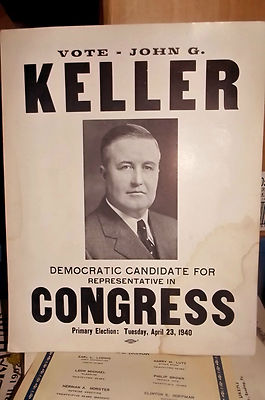 Title (ebay affiliate link): 1940 Political Placard John G. Keller for Congress Berks County, Pennsylvania