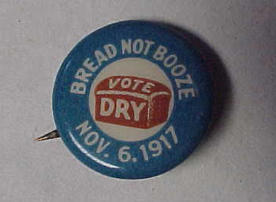 Title (ebay affiliate link): 1917 POLITICAL PIN BACK BUTTON PROHIBITION VOTE BREAD NOT BOOZE - RARE