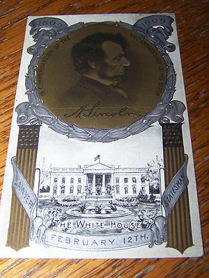 Title (ebay affiliate link): Abraham Lincoln Postcard - Centennial Card - Lovely in Silver and Gold!