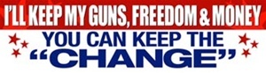 I'LL Keep My Guns, Freedom & Money, Keep The Change Anti Obama bumper sticker