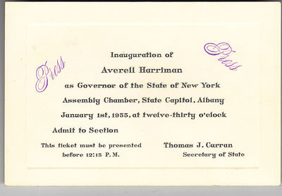 Title (ebay affiliate link): 1955 Press Ticket To New York Governor Harriman Inauguration