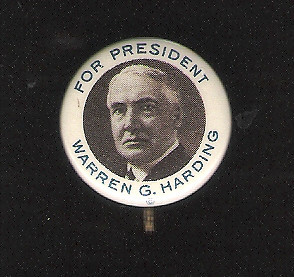 mint WARREN G. HARDING 7/8 inch Whitehead,Hoag white border 1920 campaign button