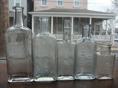 Title (ebay affiliate link): Mold Blown 1800s Drug Store Medicine & Cure Bottle Lot Of 5 antique Bottles