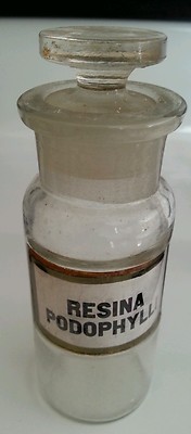 Title (ebay affiliate link): ANTIQUE APOTHECARY JAR BOTTLE LABEL UNDER GLASS resina podophylli