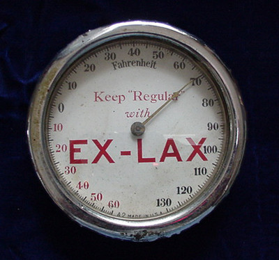 VINTAGE EX LAX THERMOMETER WORKS from old SIGN GLASS FRONT