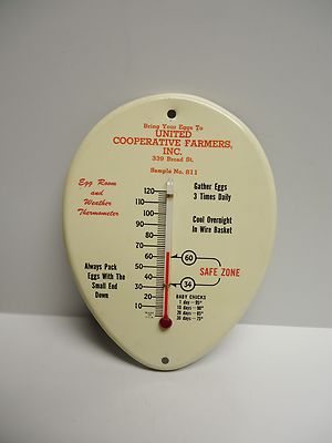 Title (ebay affiliate link): Vintage - UNITED COOPERATIVE FARMERS INC. Egg Room and Weather Thermometer