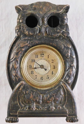 Title (ebay affiliate link): Great Art Deco Metal & Wood Figural Owl Clock With Lit Eyes