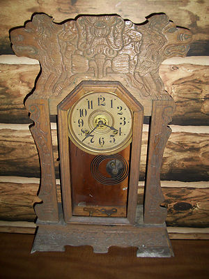 Title (ebay affiliate link): Antique New Haven Clock Co. Gingerbread Lions Clock Parts Repair 8 Day Striking