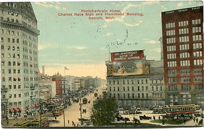 Title (ebay affiliate link): Detroit, MI, Pontchartrain Hotel, Chariot Race Sign and Hammond Building