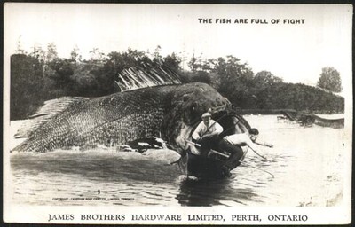 Fish Eggageration Post Card - James Brothers Hardware, Perth, Ontario