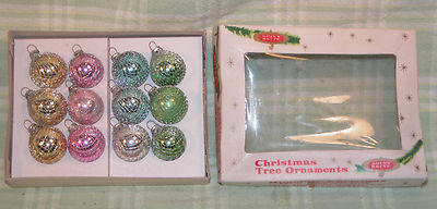 VINTAGE ANTIQUE SHINY BRITE MESH PASTEL GLASS CHRISTMAS ORNAMENTS EC & ORIG BOX