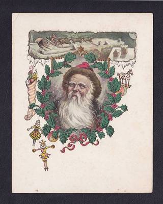 Title (ebay affiliate link): Larger 7" Victorian Embossed Card Santa Christmas Stocking Holly Wreath Doll Toy