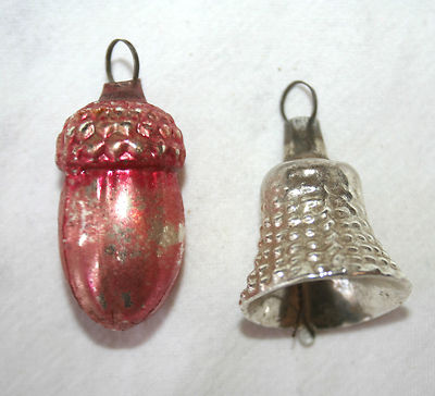 Title (ebay affiliate link): Two Early 1900s Miniature Ornaments. Acorn, Bell. Glass German Ornaments