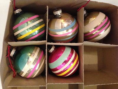 Title (ebay affiliate link): Lot of Five Vintage Glass SHINY BRITE Striped Christmas Tree Bulbs 2 1/2" in dia