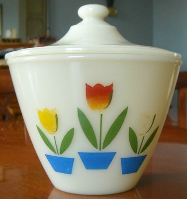 Antique Anchor Ivory Fire King Oven Ware Tulip Milk Grease Mixing Bowl with Lid