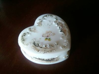 Antique Milkglass Milk Glass Heart Shaped Trinket Box