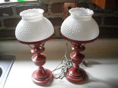 Title (ebay affiliate link): Pair of Retro / Vintage Metal Table Lamps with Milk Glass Globes 14 inches tall