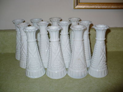 Title (ebay affiliate link): Vintage lot of 12 Milk White Vases Wedding Bridal, Florist Shabby Cottage chic