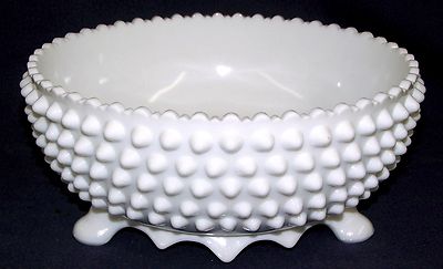 FENTON HOBNAIL MILK GLASS 8 1/2" THREE FOOTED BOWL #3724