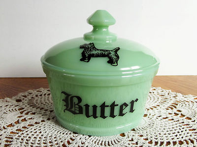 Title (ebay affiliate link): Jadeite Jadite Green Milk Glass " Butter " Dish with Scottie Dogs on the Lid