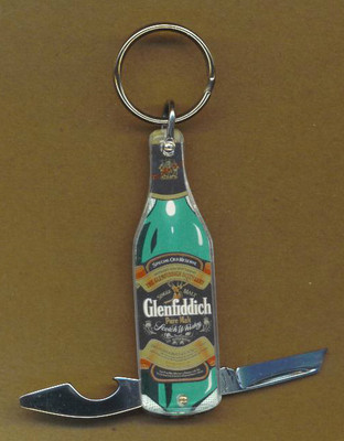Title (ebay affiliate link): Vintage Glenfiddich Single Malt Scotch Whiskey Key Chain Bottle Opener Knife